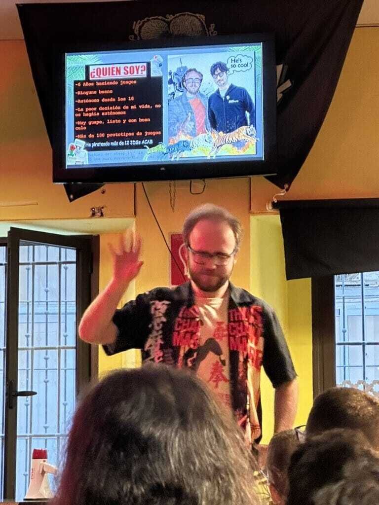Hasta primavera del año siguiente estuvo trabajando en el juego y lo publicó en Itch.io y entonces participó en su primera game jam dentro de Granada jam "y ahí conocí desarrolladores en plan tener una conversación de más de 5 minutos. Está feo confesarlo, pero yo pensaba que la generación anterior quería ser estrella de rock y la evolución lógica era que en nuestra generación el equivalente a estrella de rock era desarrollador de videojuegos. Ahora lo veo y pienso que ojalá fuera así, pero de pequeño tenía esa certeza, para mí Hideo Kojima era Freddy Mercury", afirma. En aquella primera jam participó con más gente, entre ellos el programador Alessandro Cominu, con el que mantiene una buena relación.
