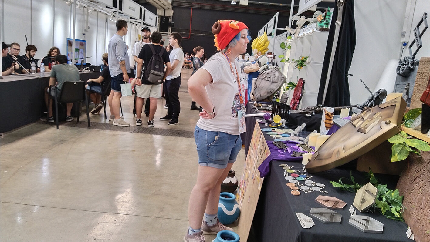 Además de jugar o de informarse sobre distintas opciones de formación en videojuegos en Cataluña estaban los estands de artesanía y los dos espacios para charlas y presentaciones, que no han parado ni un minuto con charlas y actividades variadas que han registrado varios llenos absolutos. En la sala de conferencias, a primera hora, se organizó un taller en el que Isi Cano explicó cómo se puede utilizar Baba is You como acercamiento al desarrollo de videojuegos aprendiendo a emplear la lógica para crear niveles de manera divertida.
