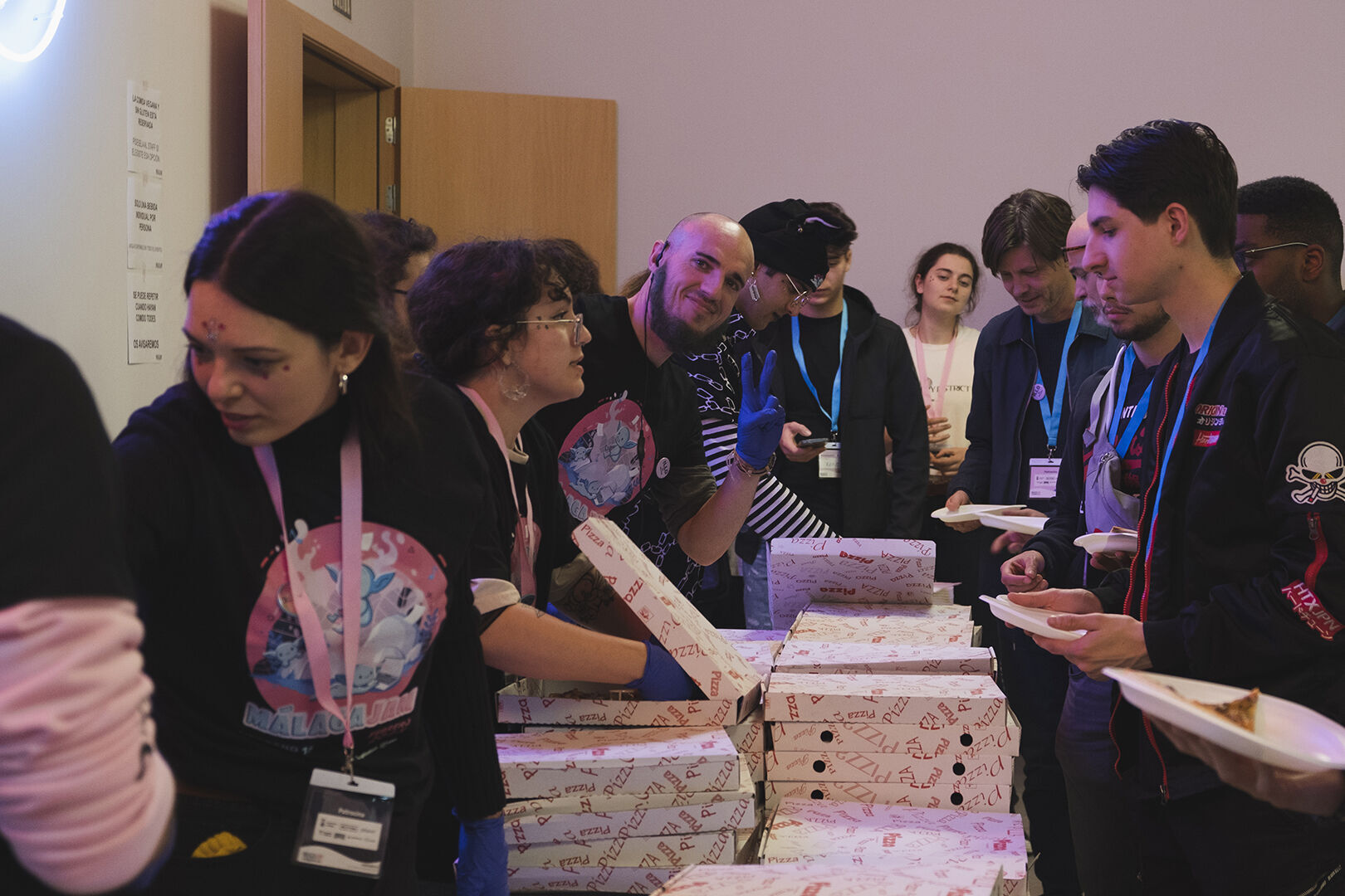Además de ese interés en mantener el carácter del evento, subyace una cuestión logística para no subir el número de entradas: en MálagaJam se cuida de que los participantes estén bien, "damos almuerzo y cena. Aparte, tenemos café gratuito durante todo el fin de semana porque hay que desarrollar mucho y vamos dando snacks, fruta, agua a la gente, les recordamos que tienen que descansar y todo eso. La comida del almuerzo y la cena es con comercios locales, sitios de comida casera, unas 750 croquetas para el sábado o unas 180 pizzas para el viernes por la noche. Si tenemos 500 personas me van a decir que no pueden con tanto y prefiero seguir apoyando al comercio del barrio antes que llamar a Telepizza, que sí podría asumir esas pizzas para 500 participantes", dice Herrero. Lo que sí está prohibido es el alcohol.