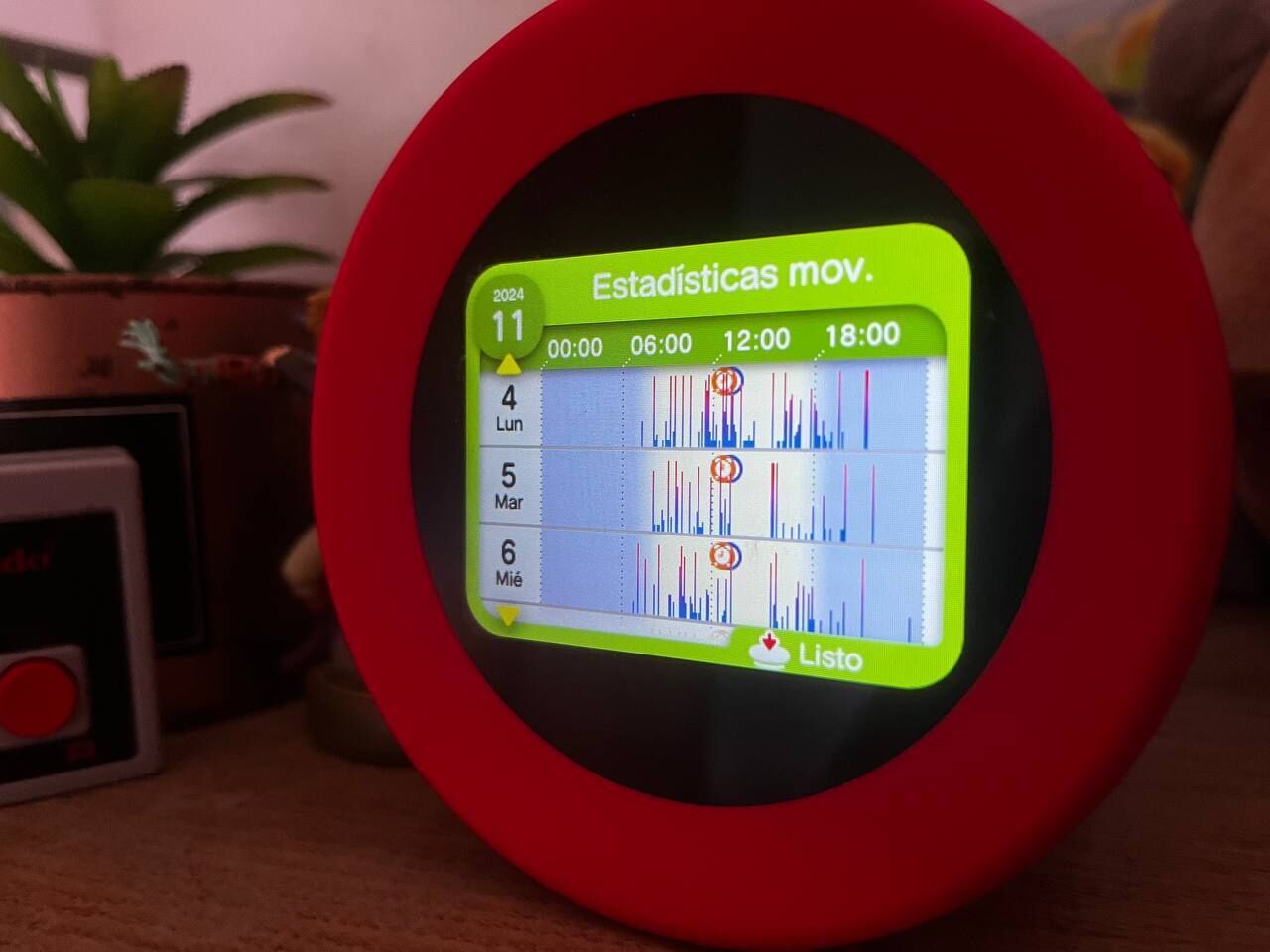 Partiendo de ahí, el equipo de Nintendo que ha desarrollado Alarmo ha tratado de hacer que sus funciones sean lo menos invasivas posibles. Por ejemplo, la idea es que puedas parar la alarma levantándote de la cama, sin necesidad de pulsar el gran botón que tiene sobre la pantalla. También nos permite establecer una hora de dormir a partir de la cual reproduce, sin que le pidamos nada, una serie de sonidos placenteros que nos ayudan a conciliar el sueño.
