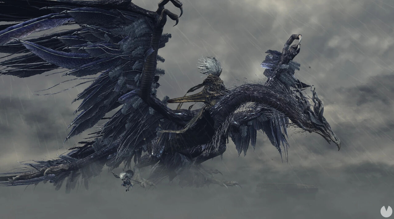 Para los que no sepan de qué hablamos, el Rey Sin Nombre es un jefe opcional de una zona secreta de Dark Souls 3. El más adelante confirmado como dios de la guerra e hijo de Gwyn (el jefe final del primer Dark Souls) entraba al campo de batalla montado sobre el Rey de la Tormenta, un dragón con bastante mala leche. El susto venía cuando, al agotar la barra de vida... resulta que el propio jinete desmontaba y era aún peor. En esta ocasión, volvemos a vernos las caras y aunque se trate de una versión nerfeada, sigue siendo peligrosísimo.