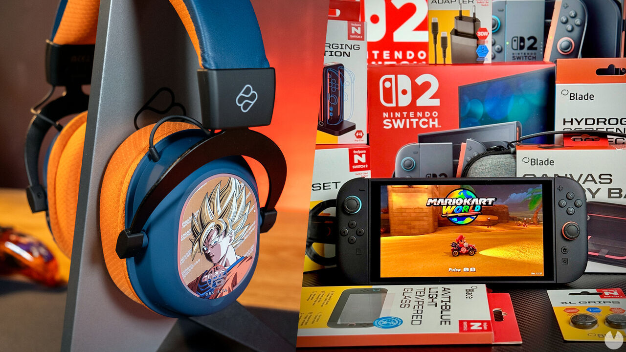 Entre los productos destacan los auriculares marca Blade con licencia Dragon Ball Z. Son personalizables con cuatro placas (Bluetooth, 2.4GHz y cable), así que son compatibles con PlayStation, PC, Switch, dispositivos móviles y más.