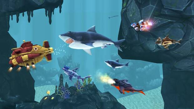 El ciclo de juego combina acción arcade rápida con un sistema de progresión estilo endless runner. El tiburón pierde salud constantemente, representando su metabolismo voraz, y solo manteniéndose bien alimentado puede sobrevivir. Esto obliga al jugador a moverse sin descanso, buscando presas adecuadas al tamaño del escualo: al principio podremos zampar peces pequeños y cangrejos, pero tendremos que huir de medusas venenosas o tiburones más grandes hasta que crezcamos lo suficiente. Cada sesión exitosa acumula monedas y gemas (el dúo clásico de divisas freemium) que sirven para mejorar habilidades o comprar accesorios y, sobre todo, para desbloquear nuevas especies jugables.