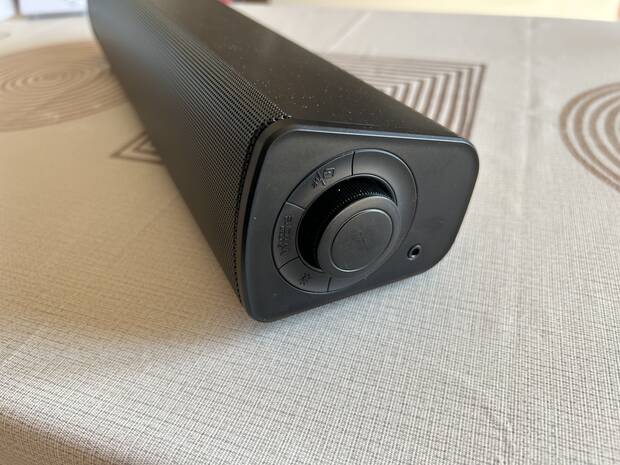 A pesar de que estamos hablando de una barra de sonido de bajo coste, Creative vuelve a apostar por ofrecer un producto de una calidad bastante buena de construcción que luce robusto, con un plástico de buena calidad y bastante firme y con unos botones en el lado derecho bastante agradables al tacto a excepción del botón para silenciar el audio que tiene un tacto un poco más endeble.