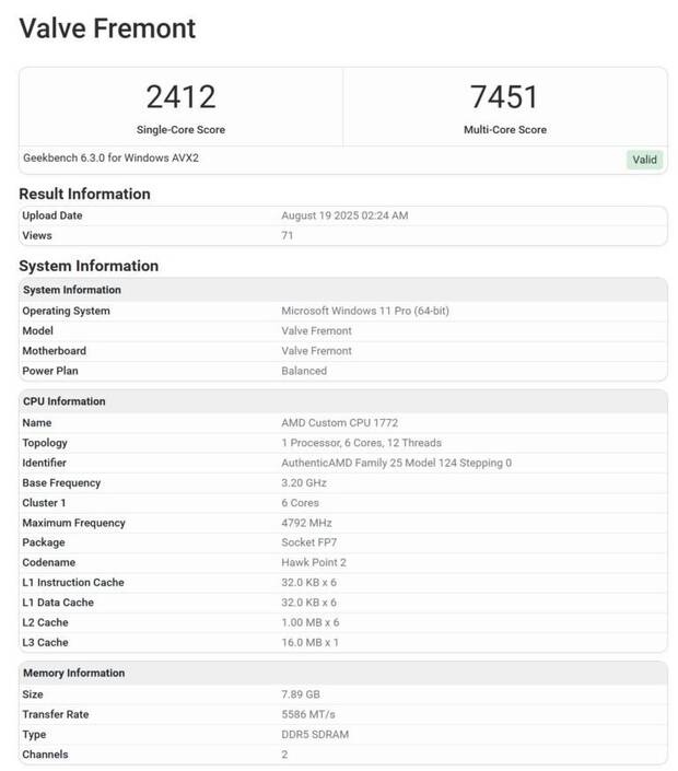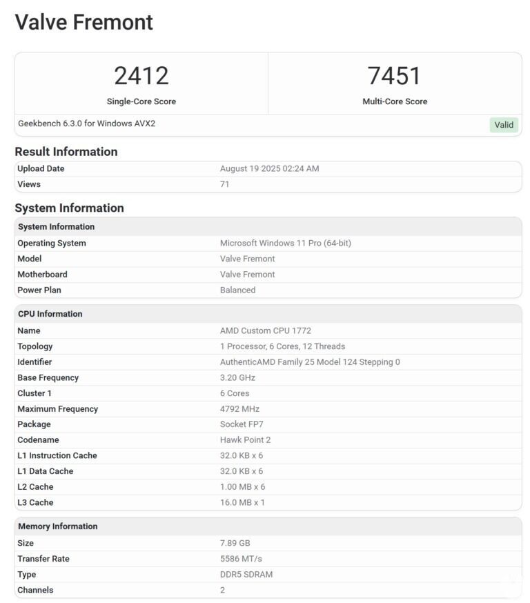 El dispositivo en cuestión se conoce por el nombre en clave de Fremont. Los rumores sobre este nuevo aparato de la empresa de Gabe Newell comenzaron hace un año y la principal novedad es que ahora ha aparecido en la web de Geekbench, una conocida herramienta de pruebas de rendimiento, lo que confirma su existencia.