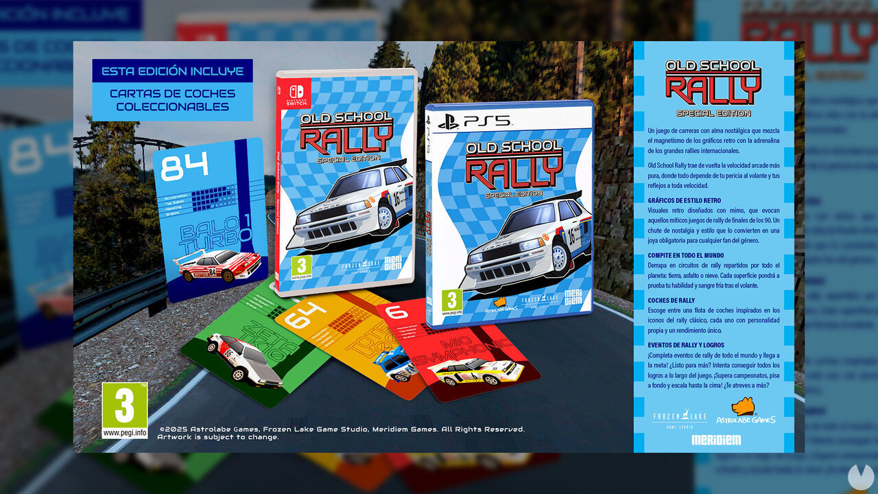 La edición física se llama Old School Rally - Special Edition, e incluye un set de cartas de coches coleccionables.