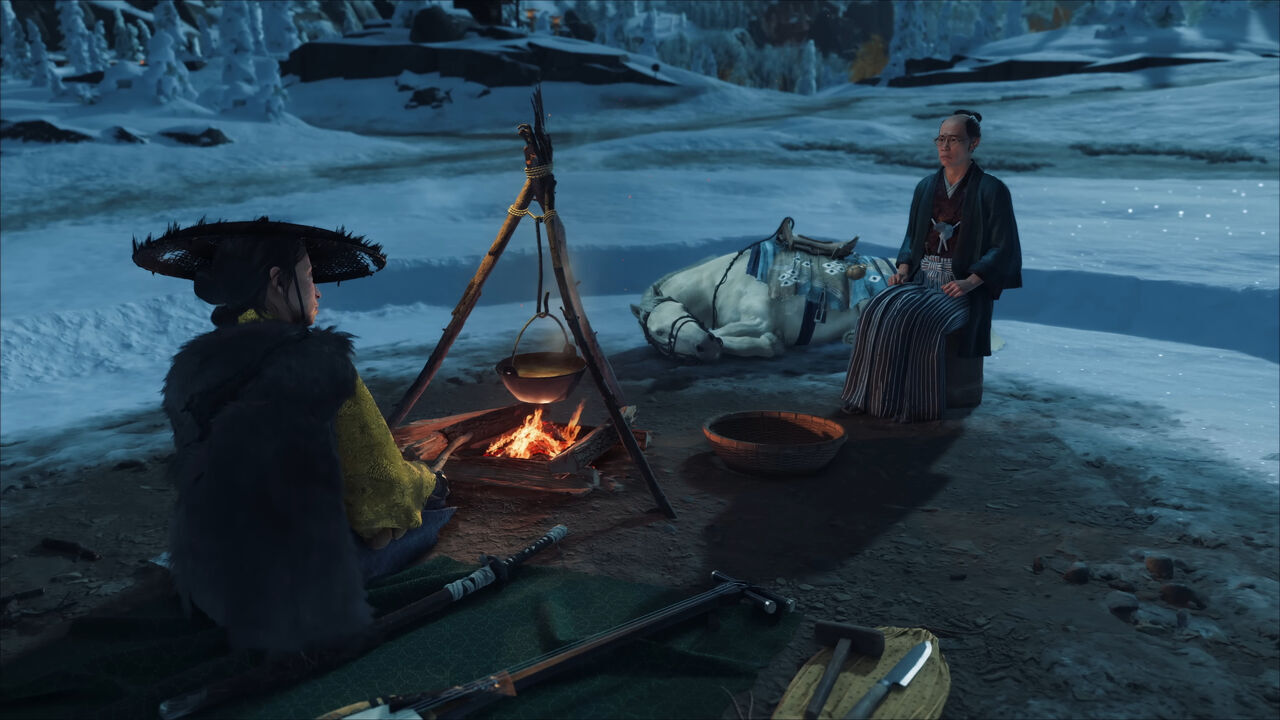 Cocinar para ti mismo tiene sus ventajas 🏕️ Acampa para reabastecerte, desbloquear mejoras, conocer aliados y más en Ghost of Yōtei.