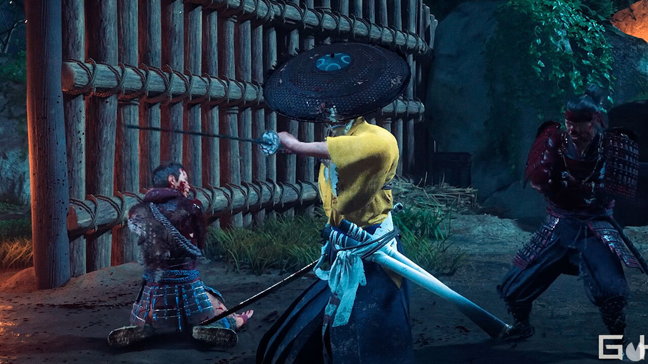 Como alternativa a manejar la espada a dos manos tenemos la opción de aprovechar dos katanas, una en cada mano. El vídeo indica que ofrece un combate rápido, con combos y cortes de área que podrían ser útiles para mantener a raya a nuestros enemigos, aunque en el gameplay también se combina el uso de bombas de humo, otras armas y la compañía del lobo.