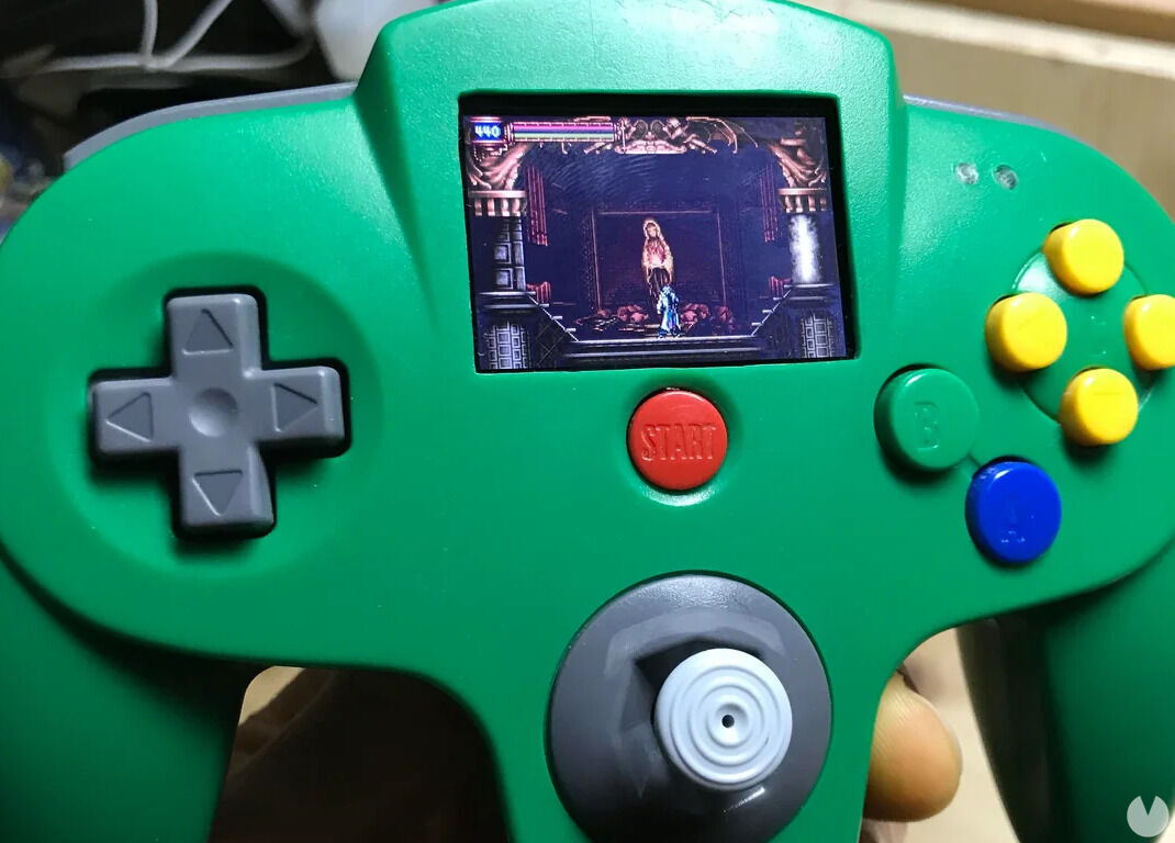Lo que hizo MaSaKee fue cortar el controlador para hacer un hueco rectangular donde colocar la pantalla. A continuación fue insertando cada uno de los componentes originales dentro del mando. Incluso tiene detalles como que existe una ranura de cartuchos, la cual se colocó aprovechando la conexión del Expansion Pack. También dispone del botón de encendido y entrada para auriculares.