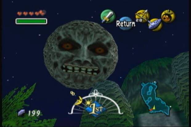 The Legend of Zelda: Majora’s Mask de Nintendo jamás se comercializó como juego de terror, pero pregúntale a cualquier fan y probablemente mencionará la inquietante luna de ojos desencajados. En esta aventura, durante un ciclo de 72 horas en tiempo de juego, una luna gigantesca y antropomórfica desciende lentamente hacia la tierra de Términa, amenazando con aniquilarla. La estética apocalíptica y la mirada sin vida de ese astro son escalofriantes; cada vez que Link mira al cielo, siente literalmente que el tiempo se agota.