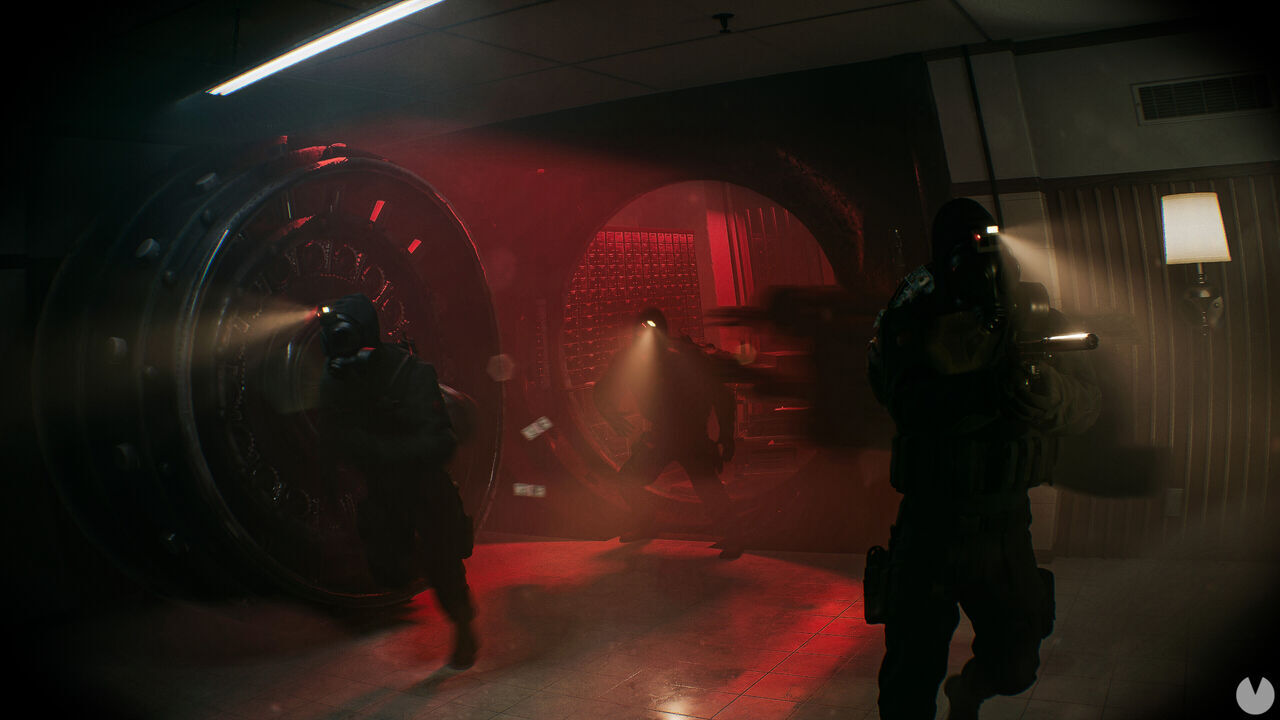 Nuestro equipo se mueve por unas instalaciones que en el futuro serán más amplias. El juego aún está en desarrollo, se lanzará en early access el año que viene y habrá varios períodos de prueba, así que habrá margen de mejora y novedades en cuanto al contenido. La idea por ahora es la de movernos evitando cámaras y láseres, además de evitar hacer ruido y estar pendientes de "fenómenos" que anticipen la aparición del vigilante. Una luz parpadeante, un foco que se apaga repentinamente y vuelve a encenderse revelando una silueta... Si ves algo raro, escóndete porque la cosa atrapará a tu personaje o uno de tus amigos.