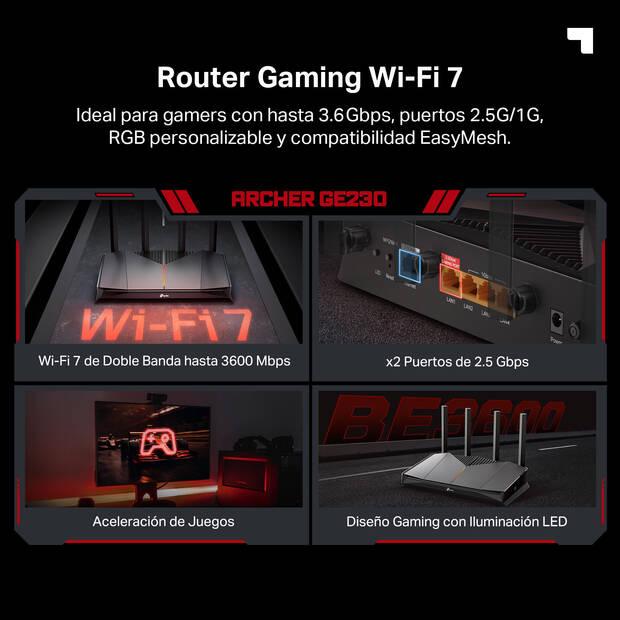 TP-Link es una de las marcas más conocidas sobre todo por sus productos relacionados con la conectividad por su buena relación calidad/precio y con el Archer GE230 quiere ofrecernos un router para el gaming moderno y del futuro, ya que las nuevas consolas y ordenadores ya cuentan con el sistema Wi-Fi 7 integrado.