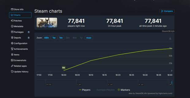 Si os estáis encontrando con que intentáis acceder al juego y se queda en el menú principal con el mensaje de espera en cola habitual de estos títulos multijugador y una imagen de un logo escudo y una espada en movimiento, tranquilos, no sois vosotros, es la cola y la imposibilidad de acceder a los servidores del juego hasta que no haya un hueco (o abran nuevos servidores durante estas primeras horas de lanzamiento) ya que en el momento en el que escribimos esta noticia hay más de 70.000 jugadores simultáneos en Steam, lo que no sabemos es si, como nosotros, están esperando su turno en la cola de acceso.