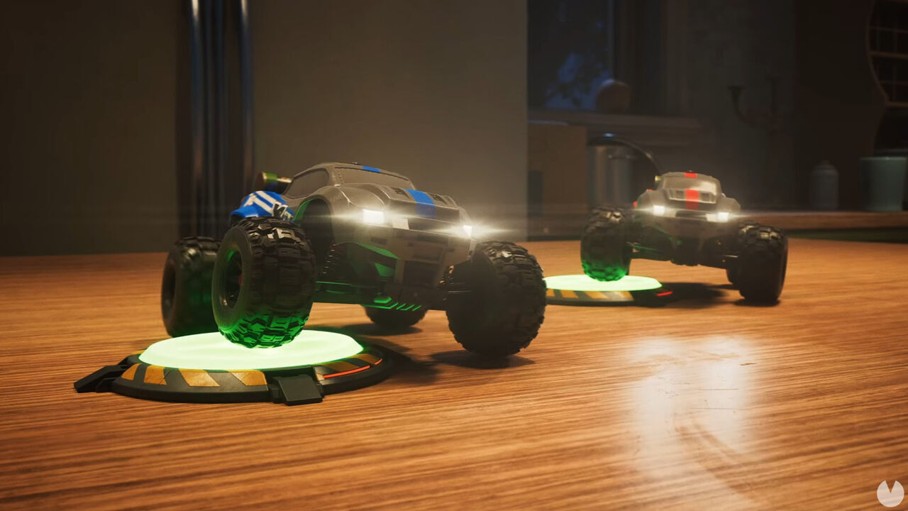Los coches radiocontrol que manejamos están equipados con una serie de funciones especiales. Podemos realizar saltos para superar obstáculos y llegar más alto, pero también usar un gancho e incluso adherirnos a superficies metálicas mediante unas ruedas que funcionan como imanes.