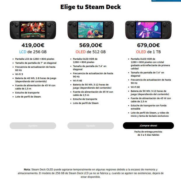 Por otra parte, también han aclarado que el modelo de 256 GB de la Steam Deck LCD ha dejado de fabricarse y que dejará de estar disponible en cuanto se agoten las existencias. De hecho, ya lo han hecho para España, donde ya luce el botón de "agotado".