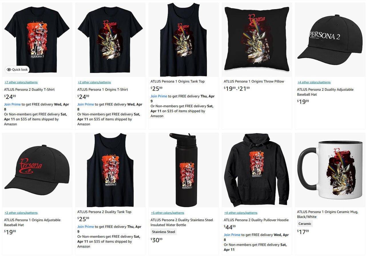 Como parte del merchandising del 30º aniversario se han lanzado camisetas, gorras, tazas y más productos de los cinco juegos, hasta aquí lógico, pero se han utilizado nombres como Persona 1 Origins o Persona 2 Duality, cuando sus nombres originales eran Revelations: Persona, Persona 2: Innocent Sin y Persona 2: Eternal Punishment. Estos cambios suelen reservarse para los remakes o remasterizaciones: Atlus llama Persona 4 Revival a la actualización de Persona 4/Golden y Persona 3 Reload al remake de Persona 3.