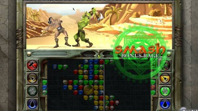 La pantalla de juego se divide en dos partes una con las gemas de colores que van cayendo en la parte del jugador y en la de su rival y una parte superior en la que vemos a los dos luchadores enfrentándose. Según vayamos haciendo combinaciones de colores y las gemas se vayan retirando, desencadenaremos ataques o el uso de objetos, teniendo cada personaje habilidades específicas.