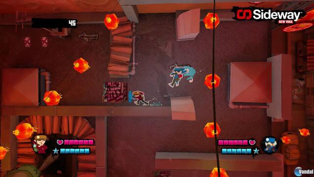Incluye cooperativo local y batallas contra jefes como "un conejo rosa sádico que vomita conejitos pequeños". La banda sonora hip-hop está compuesta por Mr. Lif.