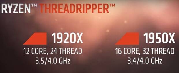 El Ryzen 1950X tiene 16 núcleos y 32 hilos funcionando a 3,4 GHz (4 GHz con Boost), mientras que el Ryzen 1920X cuenta con 12 núcleos y 24 hilos funcionando a 3,5 GHz (4 GHz con Boost). Se rumorea que tendrían un TDP de 155 y 125 vatios respectivamente.