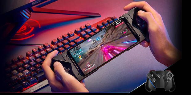 Inicialmente el ROG Kunai Gamepad se diseñó para el móvil ROG Phone II de la misma marca pero, sin embargo, el mando también es compatible con otros terminales a través de su conexión Bluetooth siendo el único pormenor que si queremos conectarlo a los extremos del teléfono (como en la imagen de más abajo) nuestro terminal tendrá que tener las mismas dimensiones que el ROG Phone II.