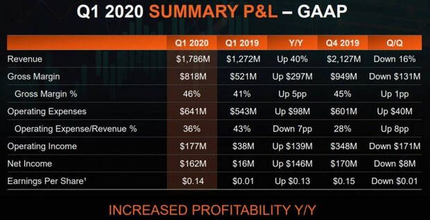 Según los datos que han compartido en su informe financiero de los tres primeros meses del 2020, AMD ha aumentado sus ingresos en un 40 % si lo comparamos con el mismo periodo del 2019, una cifra excelente para la empresa liderada por Lisa Su.
