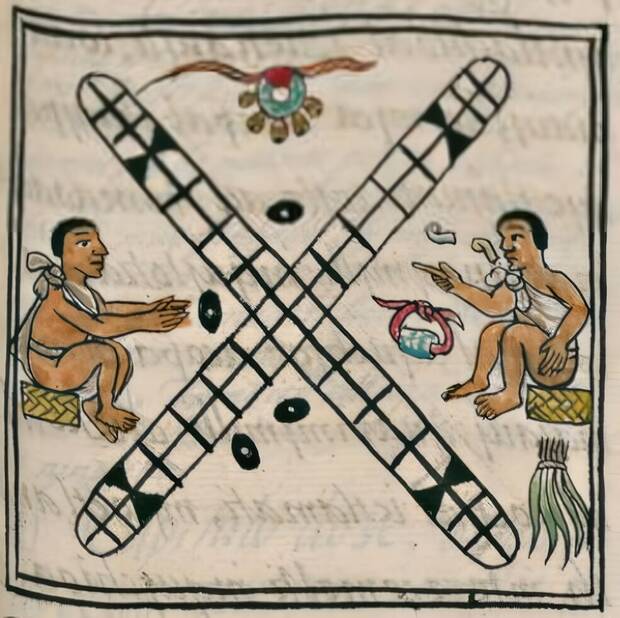 El contexto urbano refuerza esta lectura. Naachtun, un centro clásico con más de 70 monumentos erigidos y una historia política marcada por las tensiones entre Tikal y Calakmul, presenta en el grupo 6L-13 un conjunto de residencias monumentales ligado probablemente a un linaje de alto rango que combinaba funciones administrativas, ceremoniales y domésticas. Situar un tablero de patolli en un espacio abierto de ese complejo sugiere que el juego formaba parte de la sociabilidad de élite: un lugar donde se negociaban alianzas, se escenificaba la fortuna y se convocaba a los dioses del destino mediante tiradas de dados y recorridos de fichas, tal y como describen las fuentes coloniales para otros contextos mesoamericanos.