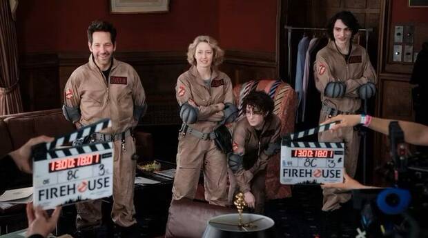 Las últimas imágenes detrás de cámaras muestran a la nueva generación de Cazafantasmas, incluyendo a la familia de Egon Spengler, compuesta por Callie (Carrie Coon), Phoebe (Mckenna Grace) y Trevor (Finn Wolfhard), junto al ex profesor de Phoebe y entusiasta de los Cazafantasmas, el Grooberson, interpretado nuevamente por el siempre encantador Paul Rudd.