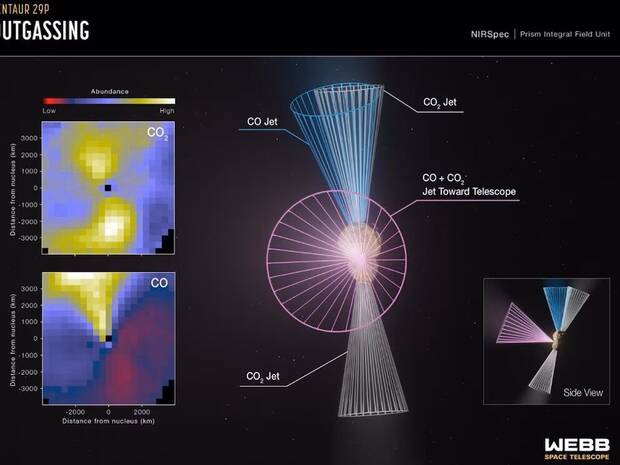Gracias al telescopio espacial James Webb, en funcionamiento desde finales de 2021, los astrónomos han podido realizar observaciones sin precedentes de este centauro. Sus instrumentos avanzados han permitido detectar por primera vez chorros de monóxido de carbono y dióxido de carbono en el 29P/Schwassmann-Wachmann 1, nunca antes vistos, lo cual arroja luz sobre los materiales primordiales de estos objetos. Lo que hace que este descubrimiento sea especialmente notable es la cantidad de información que se puede extraer de estos centauros debido a sus bajas temperaturas y su antigüedad.