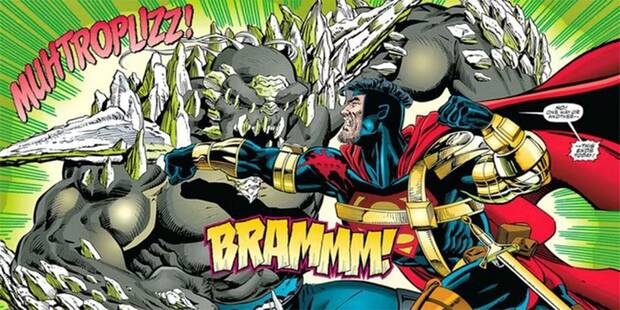 Vamos a olvidarnos de armaduras acorazadas mecánicas, que no hay pocas precisamente en el armario de Superman. Vamos a irnos a los salvajes años 90, una época muy exagerada en el mundo del cómic. En Superman/Doomsday: Hunter/Prey Vol 1 #3 (1994), Superman se enfrentaba Doomsday, una de las criaturas más peligrosas del universo. Una cosa lleva a la otra y una Caja Madre arma a Superman hasta los dientes.