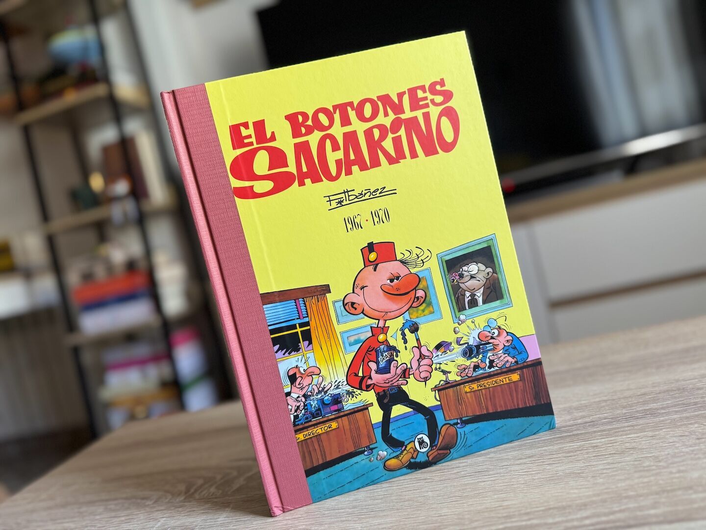 Esta Limited Edition de 432 páginas recopila las historietas publicadas entre 1967 y 1970, probablemente la etapa más sólida y reconocible del personaje. Restauradas a partir de los originales y presentadas en tapa dura, las páginas recuperan no solo la línea clara y el color original de Ibáñez, sino el pulso frenético y caricaturesco que definía a El DDT, la revista donde se forjó. Cada historieta es un pequeño bucle de caos, un gag en espiral donde todo puede salir mal y el pobre botones -en su eterna inocencia- acaba convertido en la diana de los enfados del Dire.