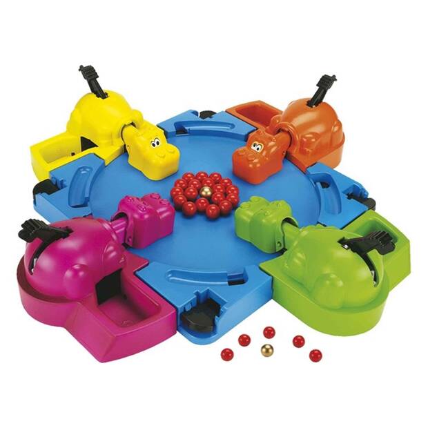 Hipopótamos tragabolas, creado por Fred Kroll y lanzado en 1978, como juego para niños es todo un icono, sobre todo si naciste en los 80 o los 90. En el juego, los participantes luchan para que sus hipopótamos "coman" la mayor cantidad de canicas.
