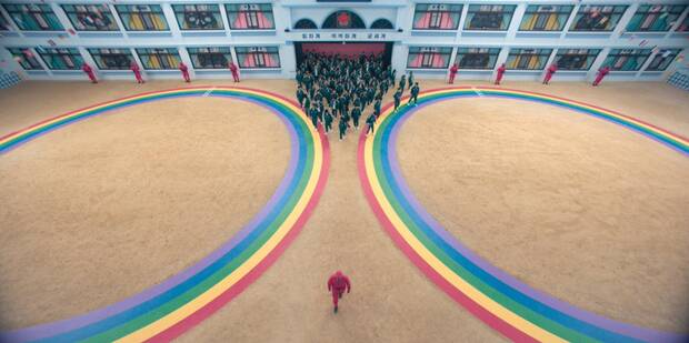 Otro detalle revelado en el avance es uno de los nuevos juegos que los participantes enfrentarán en la segunda temporada. Dos grandes círculos en el suelo, con colores arcoíris, son el centro de una escena cargada de misterio, anticipando otro reto mortal en el que la vida de los concursantes penderá de un hilo. De hehco, en una foto anterior se vio este mismo patio de juegos pero con un miembro de la organización retirando un cadáver de un participante.