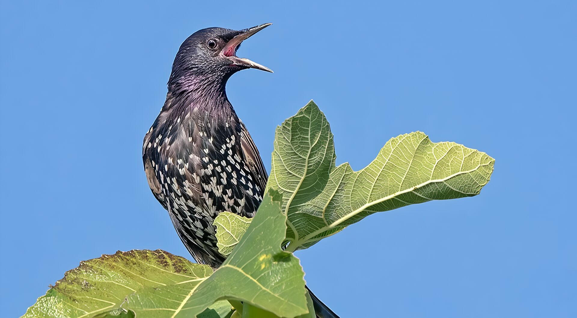 La clave de este fenómeno está en la peculiar anatomía de los estorninos. Estas aves poseen una siringe altamente especializada, un órgano fonador que les permite modular sonidos con una precisión y riqueza mucho mayores que otros imitadores famosos como los loros. De ahí que puedan reproducir no solo voces humanas, sino también timbres mecánicos, ruidos ambientales e incluso complejas secuencias acústicas como la que representaba la imagen digital.