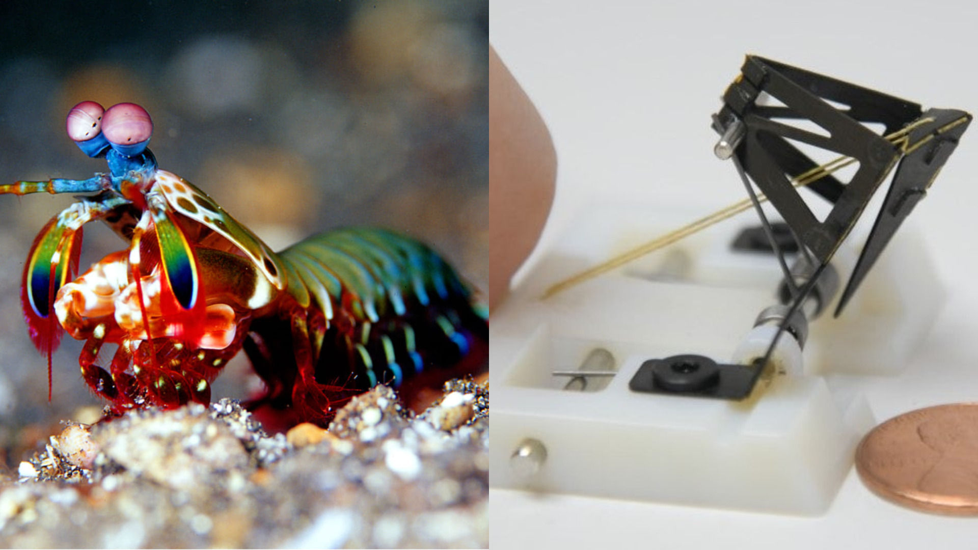 La gamba mantis, un crustáceo marino del orden de los estomatópodos, es conocida por propiciar a sus víctimas uno de los puñetazos más rápidos, implacables y letales que podemos encontrar en la madre naturaleza. No os dejéis engañar por su tamaño, ya que un golpe de las pinzas de la gamba mantis genera una fuerza equivalente a un impacto de bala del calibre 22, según nos cuentan desde Gizmodo. Ahora, un equipo de investigadores y científicos de la prestigiosa Universidad de Harvard se ha propuesto la tarea de crear un pequeño robot capaz de imitar el mismo mecanismo de caza de la susodicha gamba mantis. ¿El resultado? Podéis verlo a continuación.