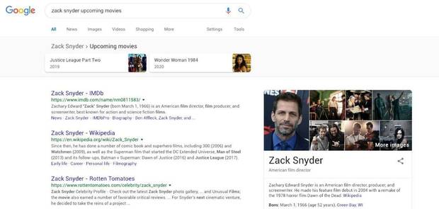 3. Google todavía piensa que Zack Snyder dirige 'La Liga de la Justicia 2'