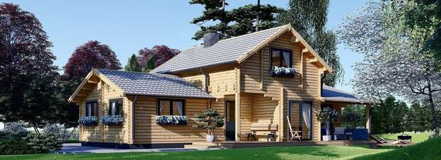 Fabricada en pino nórdico y abeto escandinavo certificado, la estructura se levanta con paredes de 66 mm y techo de láminas de hasta 20 mm, lo que garantiza solidez y durabilidad. El diseño se completa con grandes ventanales y puertas acristaladas que inundan la vivienda de luz natural, reforzando su carácter contemporáneo y acogedor. Además, la empresa ofrece la opción de incluir aislamiento reforzado para climas extremos, lo que convierte este modelo en una solución apta tanto para primera residencia como para casa vacacional.