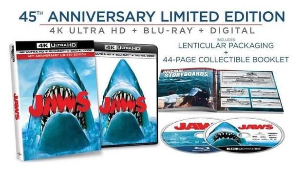 Sin embargo, lo que se publica en Internet, en Internet se queda: la información revelaba que este pack incluye un disco 4K, Blu-ray y copia digital, además de un paquete lenticular y un libro de 44 páginas sobre la producción de Tiburón. El debut de este set está previsto para llegar a las tiendas el 2 de junio.