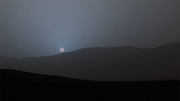 Mark Lemmon, investigador del equipo de la misión Curiosity, lo explica así: “El polvo tan fino de la atmósfera marciana tiene el tamaño preciso para que la luz penetre de manera eficiente. Cuando la luz azul se dispersa por ese polvo, permanece más cerca de la dirección del Sol que otros colores.
