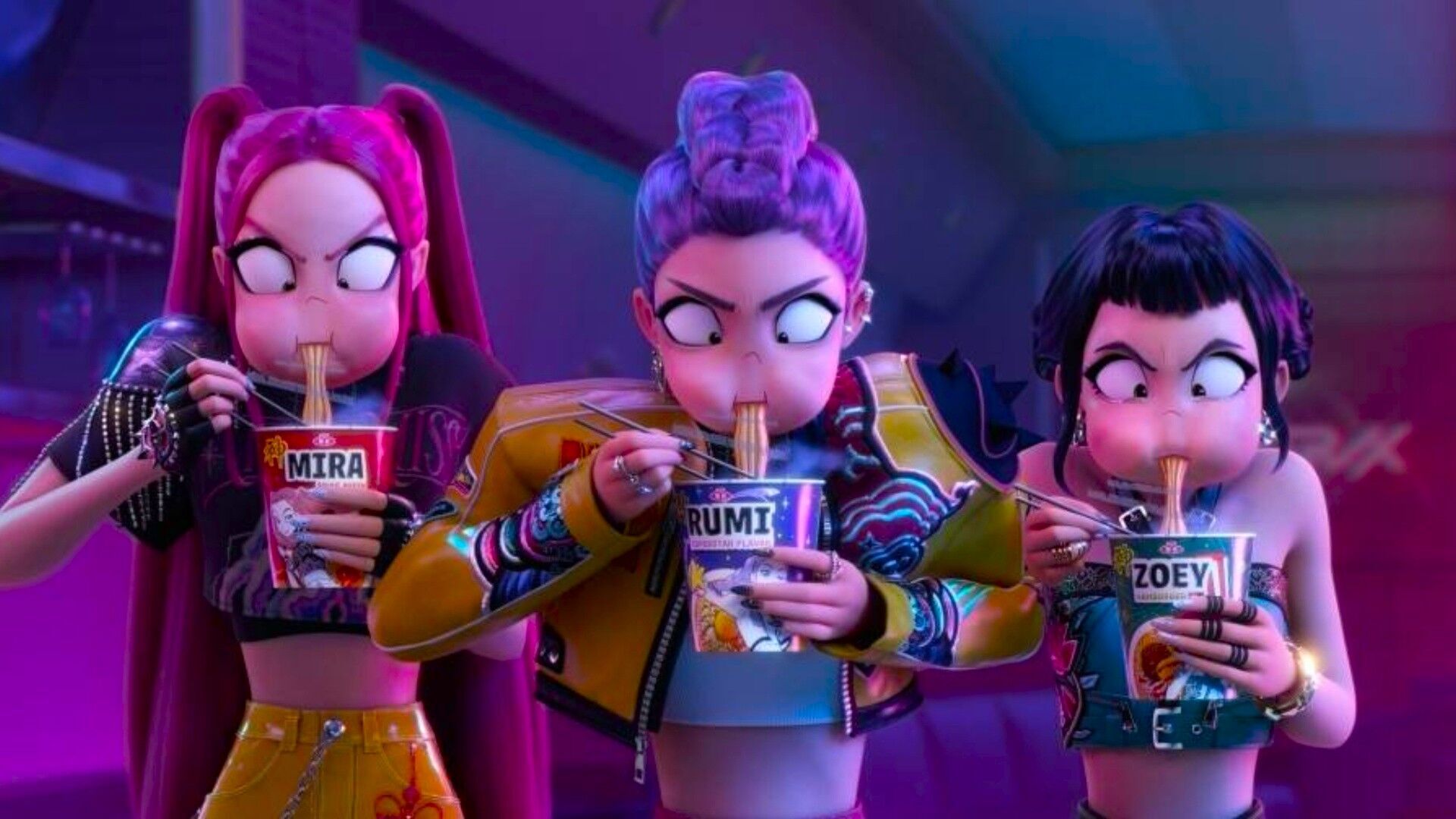 Chris Appelhans y Maggie Kang llevaron la tradicional animación 2D al 3D para dar una mayor expresividad y libertad creativa a 'Las guerras K-pop'. En ese sentido, el equipo de Netflix buscaba crear una obra parecida a las cintas del Spiver-Verse animado de Sony, donde los personajes navegan con total fluidez en un mundo cargado de color, acción y profundidad. Pero, claro, las conexiones con el anime están ahí y son inevitables.