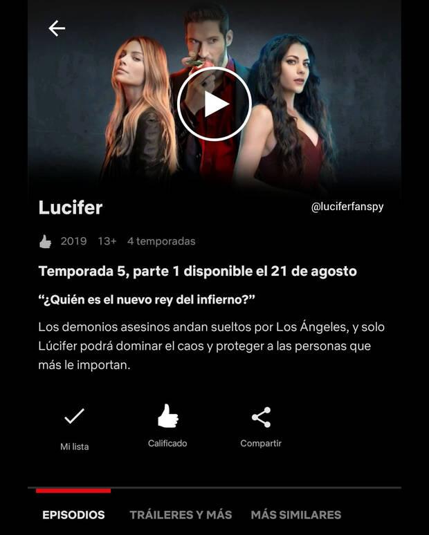 Esta filtración por parte de Netflix adelantaría que los primeros ocho episodios, de una temporada que está compuesta por un total de 16 episodios, estarán disponibles en el servicio de streaming en poco menos de dos meses. El elenco y el equipo de Lucifer volvieron a trabajar hace dos semanas, con el fin de completar los episodios finales de la quinta temporada.