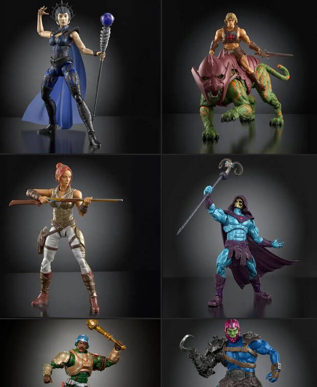 El roster inicial apunta a lo obvio (y a lo eficaz): He-Man con la Espada del Poder, Skeletor con su báculo, Teela y Evil-Lyn, además de secundarios como Man-At-Arms, Tri-Klops y Trap Jaw, con Battle Cat como pieza grande y armadura extraíble. Es, en la práctica, una selección diseñada para que el primer wave “cuente” la película por sí solo en un expositor.