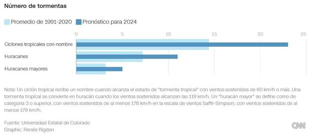 Phil Klotzbach, pronosticador principal del estudio, ha expresado a la CNN su asombro ante estos números, afirmando que se trata del pronóstico de abril más activo desde que comenzaron a emitirse en 1995.