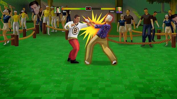 Pero si el largometraje ya flaquea en casi todos los frentes, su videojuego oficial directamente se desploma. Happy Gilmore: Golf Mayhem 98, integrado en la plataforma y controlable desde el móvil, intenta ofrecer minijuegos que combinan conducción de carritos, peleas y partidas de golf. Sin embargo, la ejecución es tan desastrosa como frustrante: controles imprecisos, físicas rotas, tiempos de respuesta nefastos y un diseño visual que parece sacado de una beta inacabada.