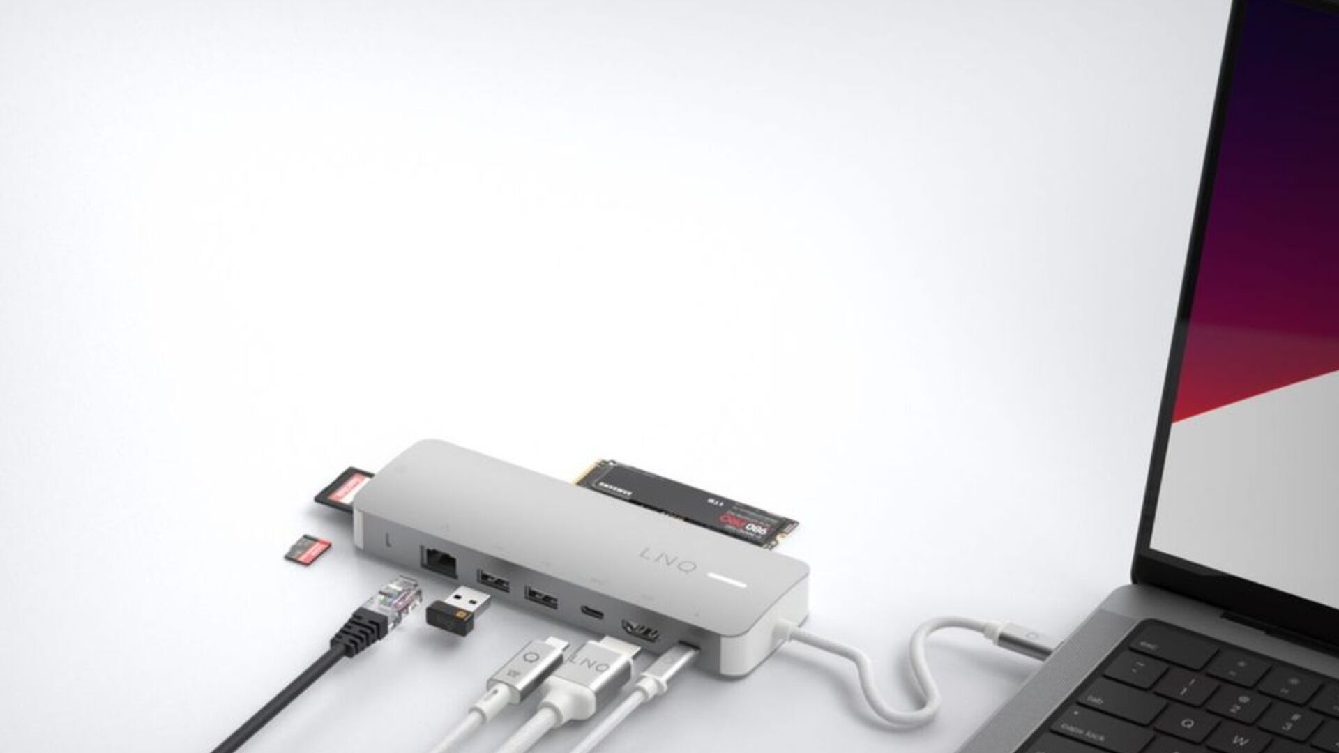 La firma holandesa LINQ, inspirada en el minimalismo, tiene en su catálogo el ProConnect 9in1 SSD Pro Studio, un hub multipuerto que destaca por incluir algo que ningún competidor ofrece de forma integrada en este tamaño. Y es que este dispositivo trae un compartimiento para instalar un disco SSD NVMe M.2 PCIE, convirtiendo el hub en una solución completa de almacenamiento externo ultrarrápido más allá de la conectividad.