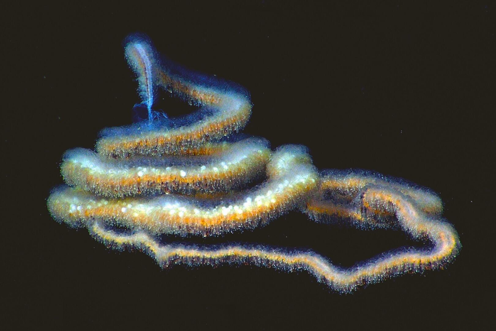 Estos animales no son “gigantes” en el sentido habitual. Cada sifonóforo es en realidad una colonia de zooides especializados: algunos capturan presas con tentáculos urticantes, otros impulsan el cuerpo con estructuras pulsantes y otros se encargan de la reproducción. Funcionan como un único organismo, pero cada unidad cumple una función precisa. Esta estrategia biológica permite que la colonia crezca a lo largo de decenas de metros, sostenida por la flotabilidad del agua, sin necesidad de esqueleto ni músculos fuertes.