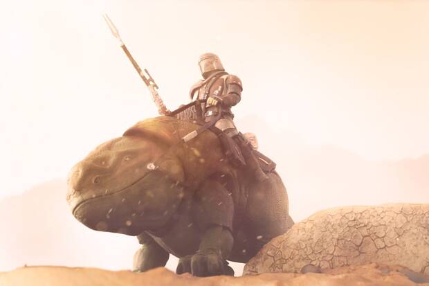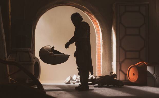Hay un montón de fotografías y pequeños dioramas, todos ellos recreando tomas de la serie de Disney+, muchas de ellas con efectos de iluminación, retoques a nivel de efectos especiales y mostrándonos inteligentes juegos de profundidad. Básicamente, el sueño de cualquier seguidor de la obra de George Lucas cuando se ponía a jugar con sus muñecos en la soledad de su habitación.