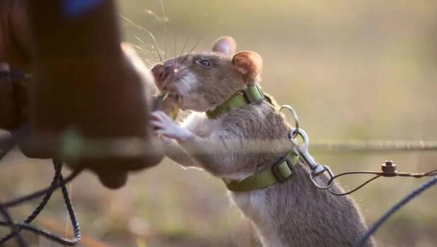 Apopo, una ONG con sede en Bélgica, entrena a sus “HeroRATs” para identificar los compuestos químicos de los explosivos, ignorando restos metálicos y acelerando así el proceso de detección. El peso ligero de las ratas, incluso tratándose de especies gigantes, es insuficiente para activar las minas, lo que las convierte en aliadas eficaces, rápidas y seguras.