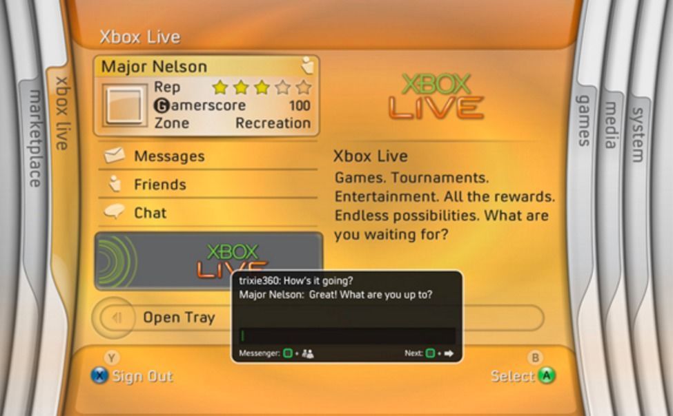 Siguiendo la estela de su predecesora, y probablemente gracias a su experiencia en PC, Microsoft ofreció un solidísimo sistema de juego online. Xbox Live era un servicio de pago, sí, pero funcionaba tan bien que los usuarios sentían que merecía la pena pagar por él. Era fácil hablar con tus amigos, el sistema de invitaciones era intuitivo y la calidad de las partidas, generalmente, óptima. Al igual que en la actualidad, Xbox 360 ofrecía dos subscripciones, una de pago y una gratuita. La primera era necesaria para jugar a internet y aprovechar muchas de las características de la consola, pero al menos podíamos estar "conectados" sin pagar, y por ejemplo descargar demos. Una práctica que fue una novedad en consola por entonces, la de lanzar demostraciones de los juegos, que parece haberse perdido en la nueva generación.