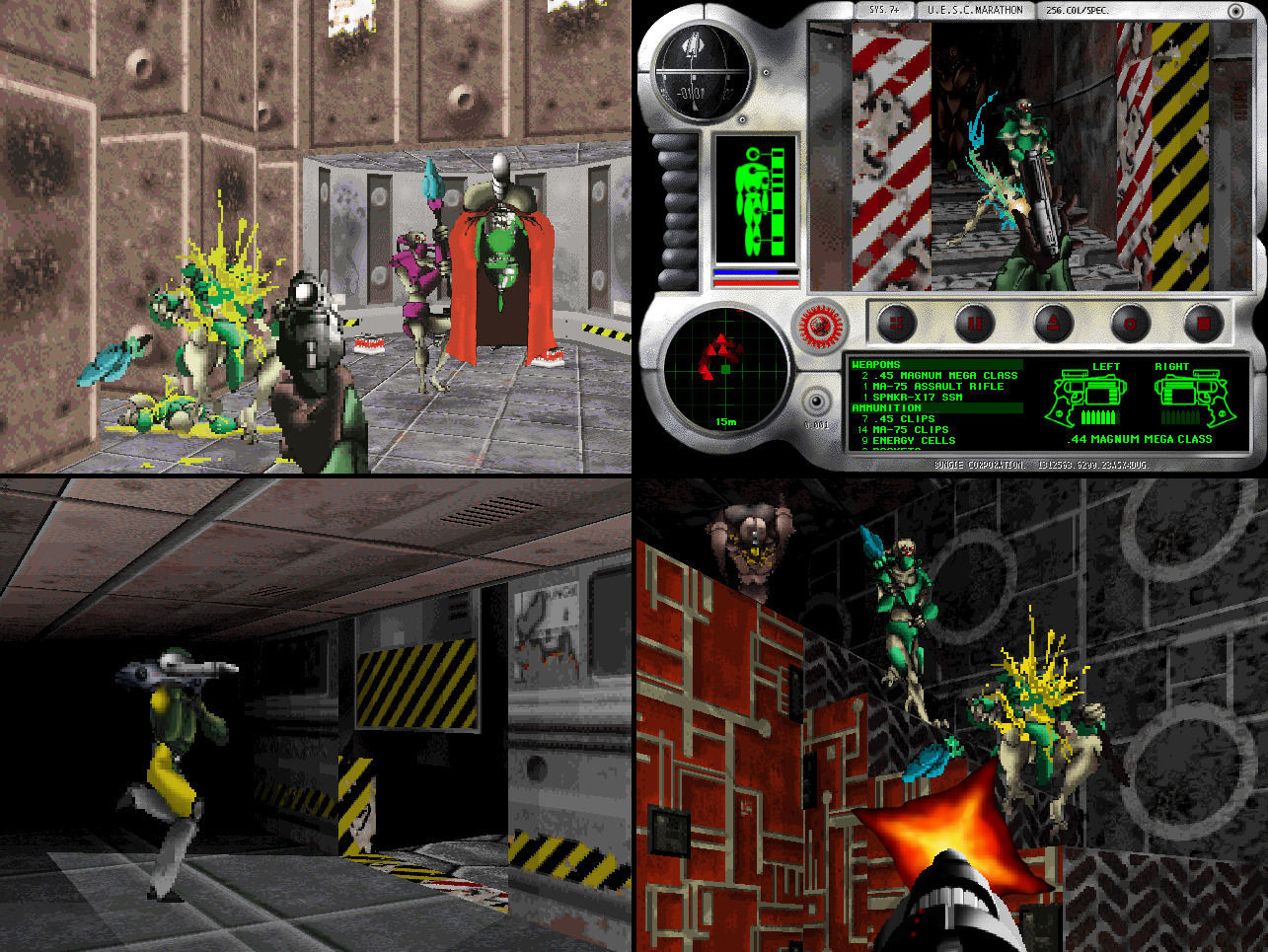 El siguiente juego de Bungie fue una revolución tanto para los ordenadores Mac como para el género de los shooters en primera persona. Marathon, mostrado en la Macworld Expo y lanzado en 1994 por un equipo que continuaba creciendo, era la respuesta de los jugadores de Apple a los Doom y System Shock que solo estaban disponibles en los ordenadores Windows. El título no solo introdujo la mecánica del rocket jumping que popularizó id Software con Quake, sino también fue el primero que permitía usar el ratón para apuntar en vertical y en horizontal.