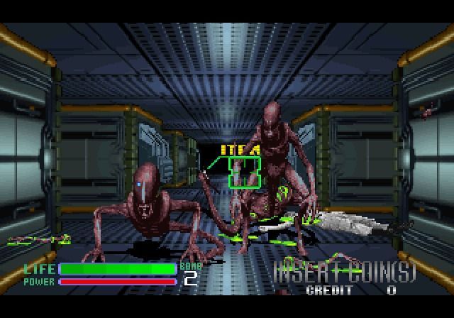 Una vez más, las recreativas continuaban ofreciendo su propia versión y visión de los hechos acaecidos en el universo cinematográfico de Alien. En esta ocasión, SEGA decidió por tomar una perspectiva mucho más arcade y directa, saltándose un poco a la torera el argumento del film de David Fincher y enmarcándonos en un planeta Fiorina 161 completamente infestado de extraterrestres. Como Marines Coloniales viajábamos para otra cacería de bichos, eliminando a legiones de xenomorfos que se habían afincado en la prisión y fundición de la tercera entrega. El juego era un excelente arcade, no dejaba respiro al jugador que se veía inmiscuido en un tiroteo constante -la réplica del rifle de los Marines ayudaba bastante-, y se tomaba ciertas licencias en términos estéticos.